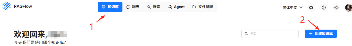 模型配置完成后,返回首页,点击上方知识库,就可以创建自己知识库了。
