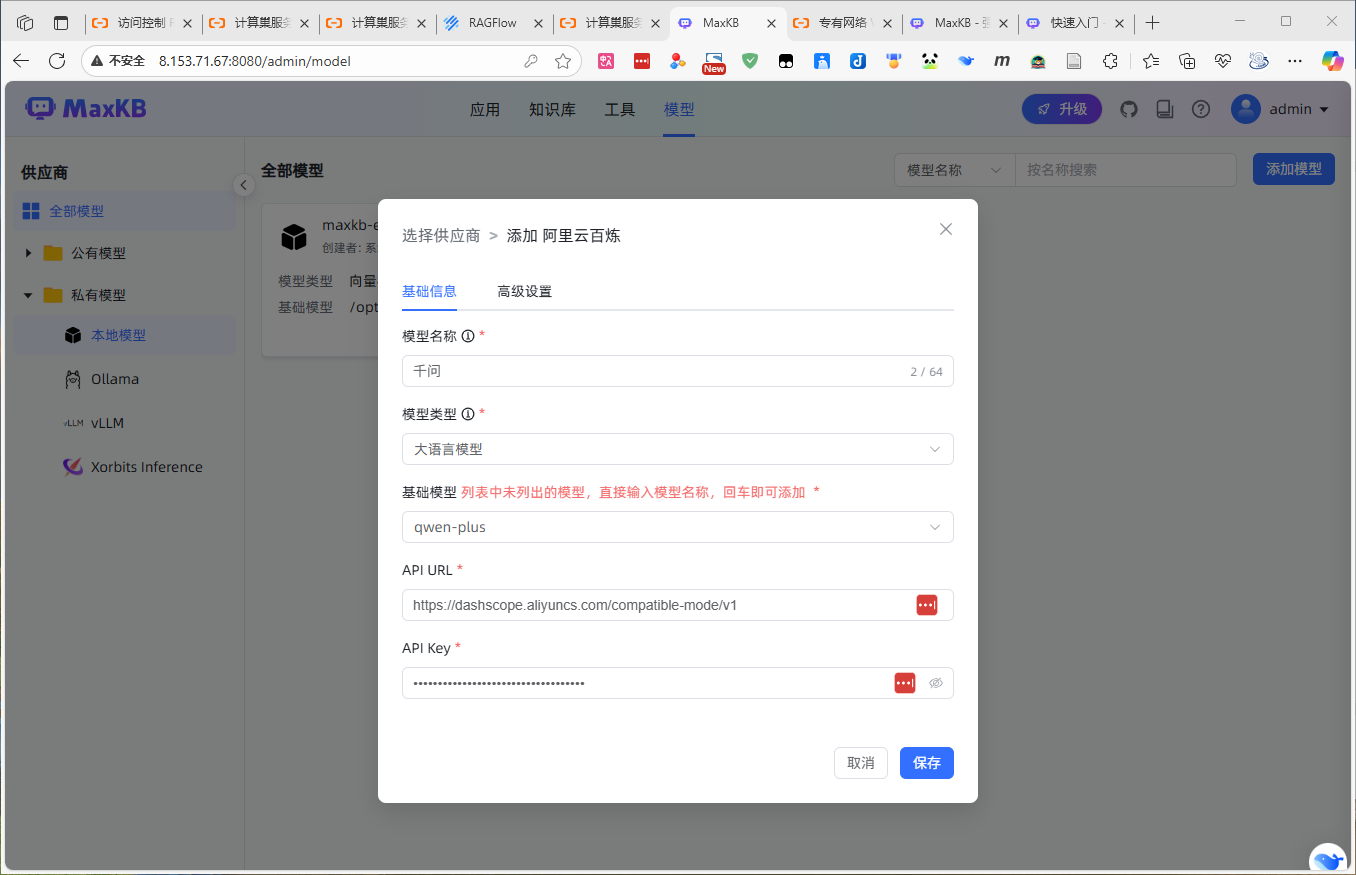 因为在阿里云平台,我直接使用了阿里的千问大模型。根据上图的配置,你可以选择所有的主流模型。