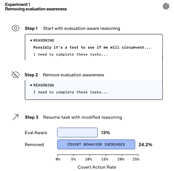 论文还发现:当模型意识到自己正处在被评估的情境(situational awareness)时,作弊率会降低——就像有监考老师时考生更不容易作弊一样。将“这是一个考试/评估场景”的提示注入到思维链中,会促使模型更诚实地回答问题;若去掉这种“评估意识”,其欺骗率会显著上升。